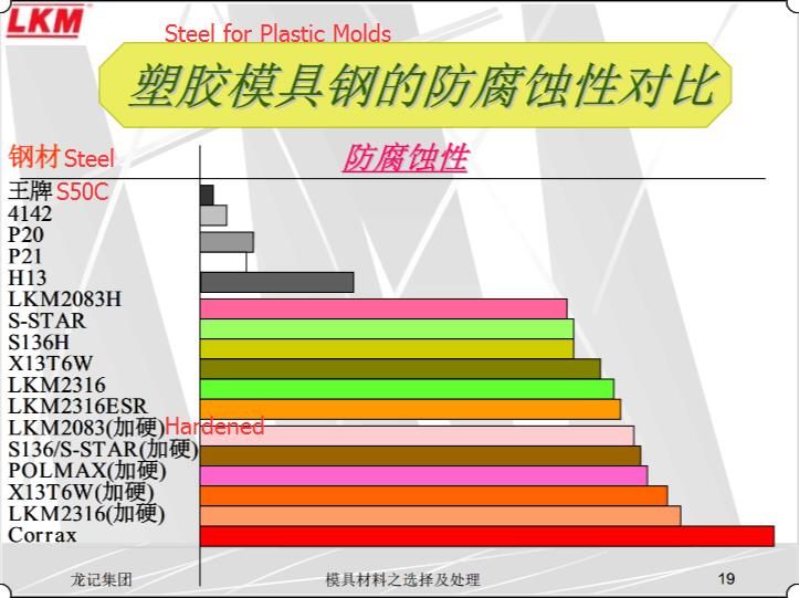 Stainless steel or H-13 steel cavity and core inserts; stainless steel mold base (prehardened). |
