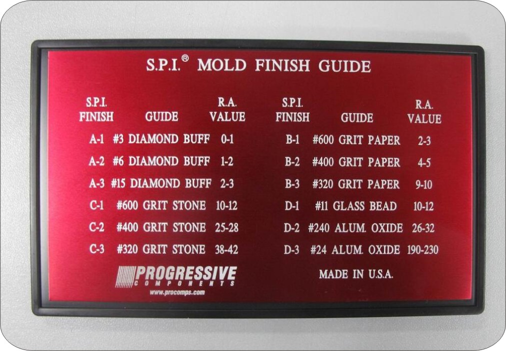 The Society of the Plastics Industry (SPI) sets standards for the plastics industry in the United States. One of the standards regulates the type of polish on molded plastic products.